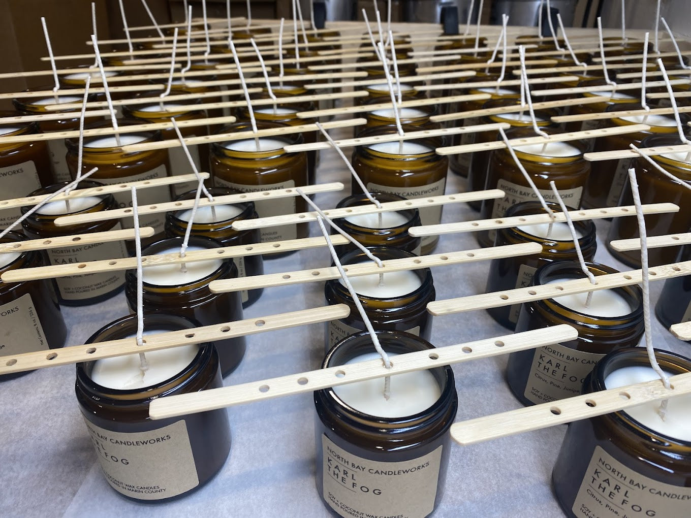 We poured our first batch of candles for sale just before Thanksgiving 2018 after months of extensive testing. North Bay Candleworks candles are all hand-poured, one batch at a time. We use a coconut and soy blend wax and 100% cotton lead-free wicks.