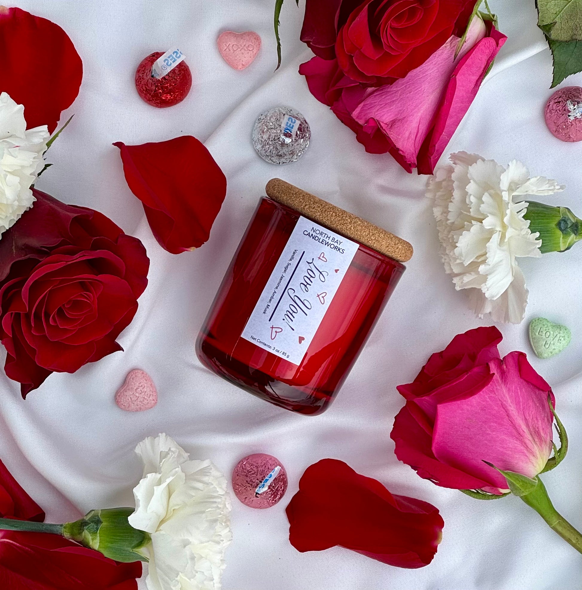 A cute candle carrying notes of vanilla, sugar, jasmine, amber, and musk, perfect as a gift for your sweetheart.