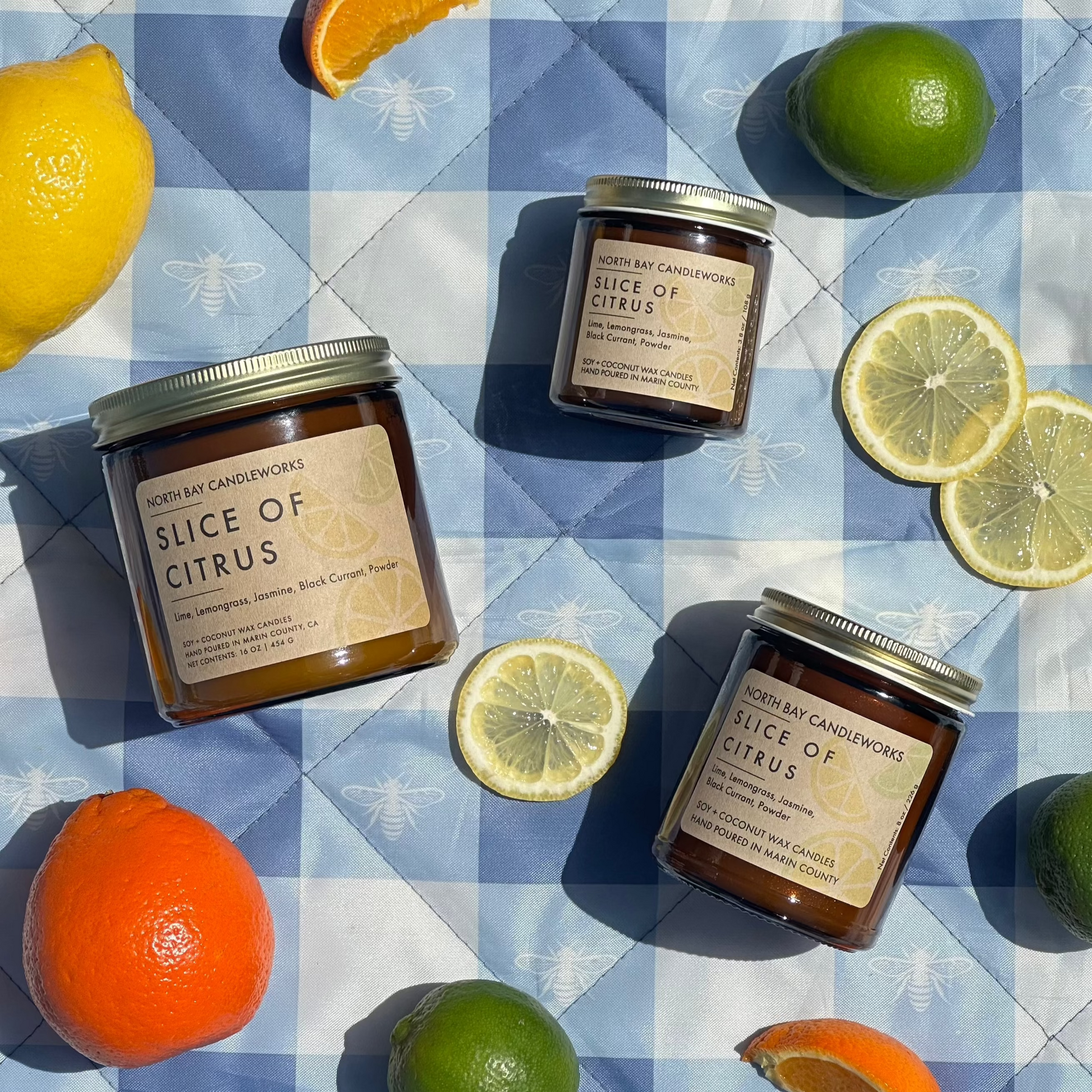 Limited spring candle! Slice of Citrus brings freshness through the scents of lime, lemongrass, jasmine, black currant, and powder.